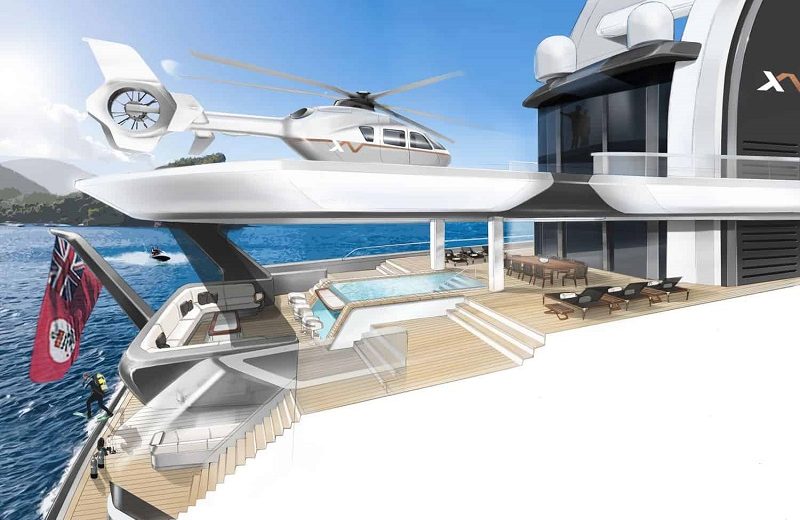 XVenture will offer an incredible interior volume of around 1,280GT, with floor to ceiling glass windows that provide breathtaking views from the main deck, the guest suites, and the owner’s full-beam apartment, as well as the upper deck saloon. The yacht also features an observation deck that provides seamless sea views from any angle, with a glass-covered winter garden and a swimming pool forward.